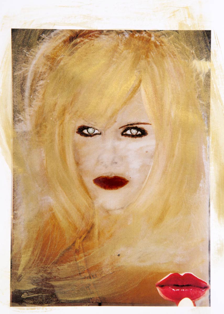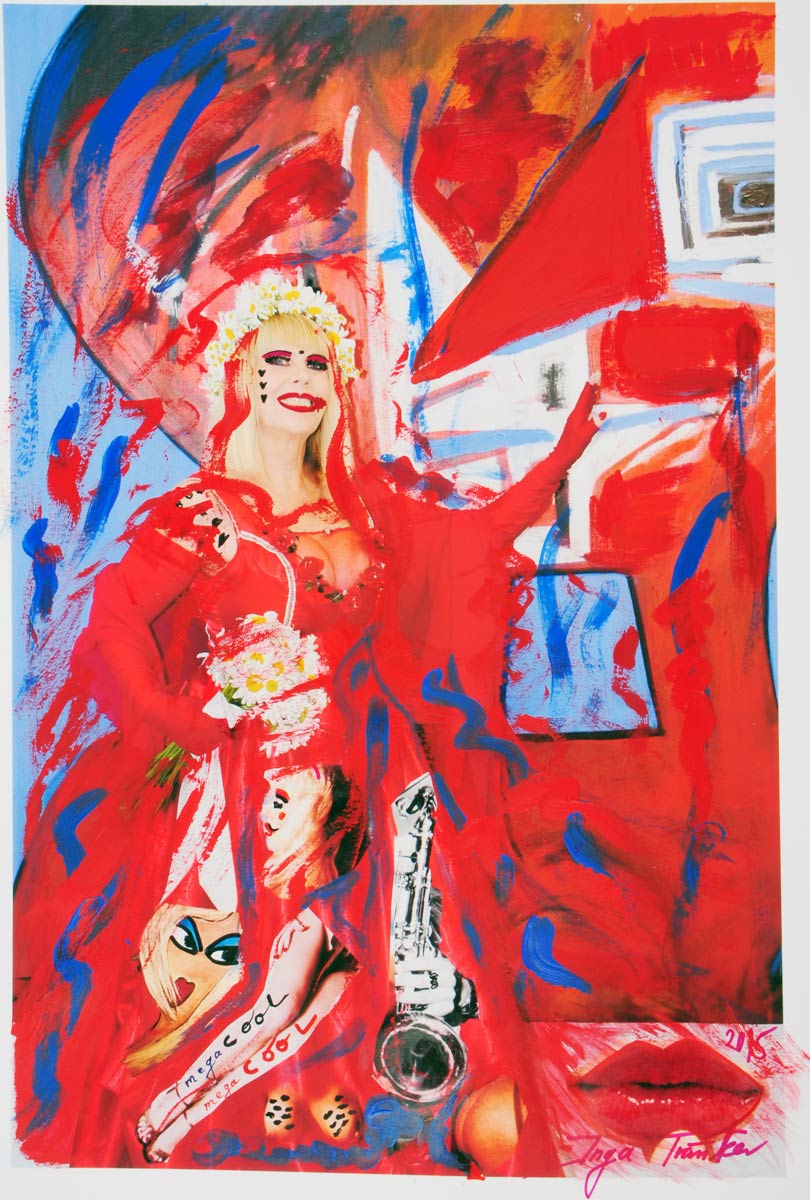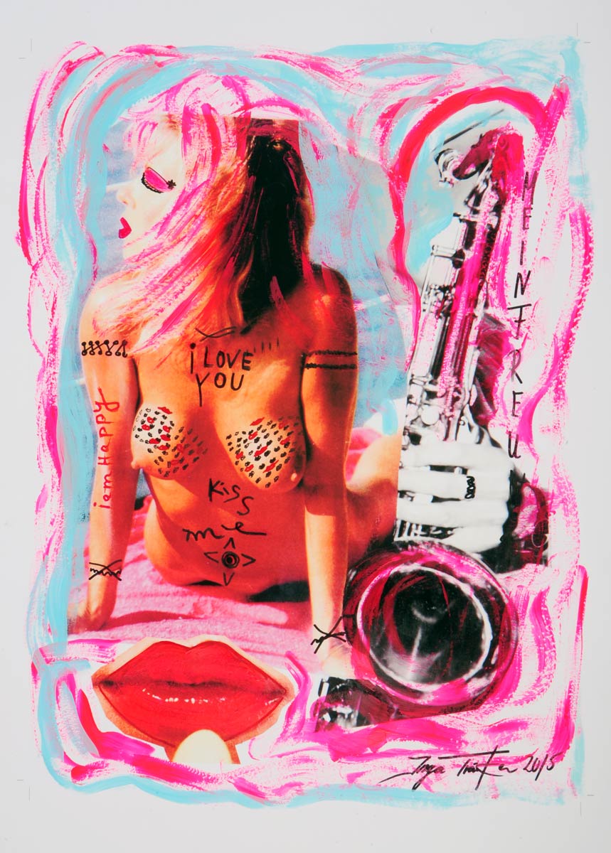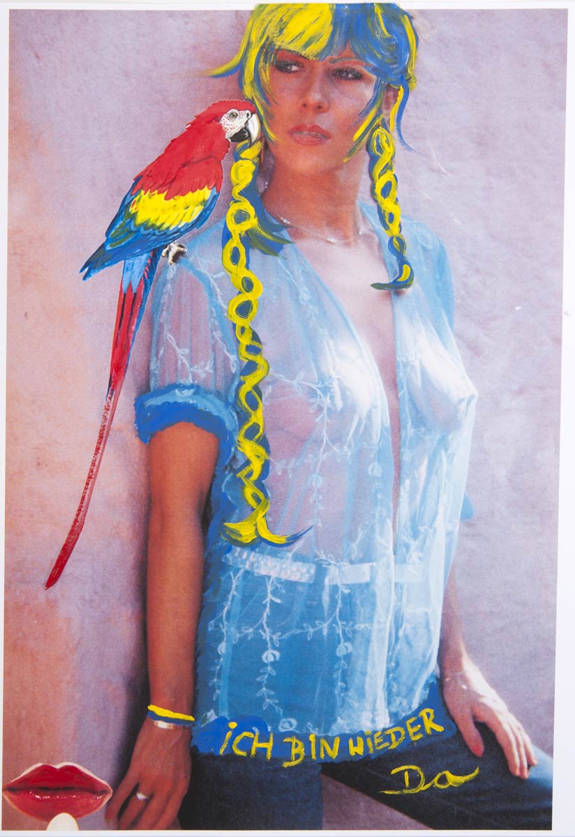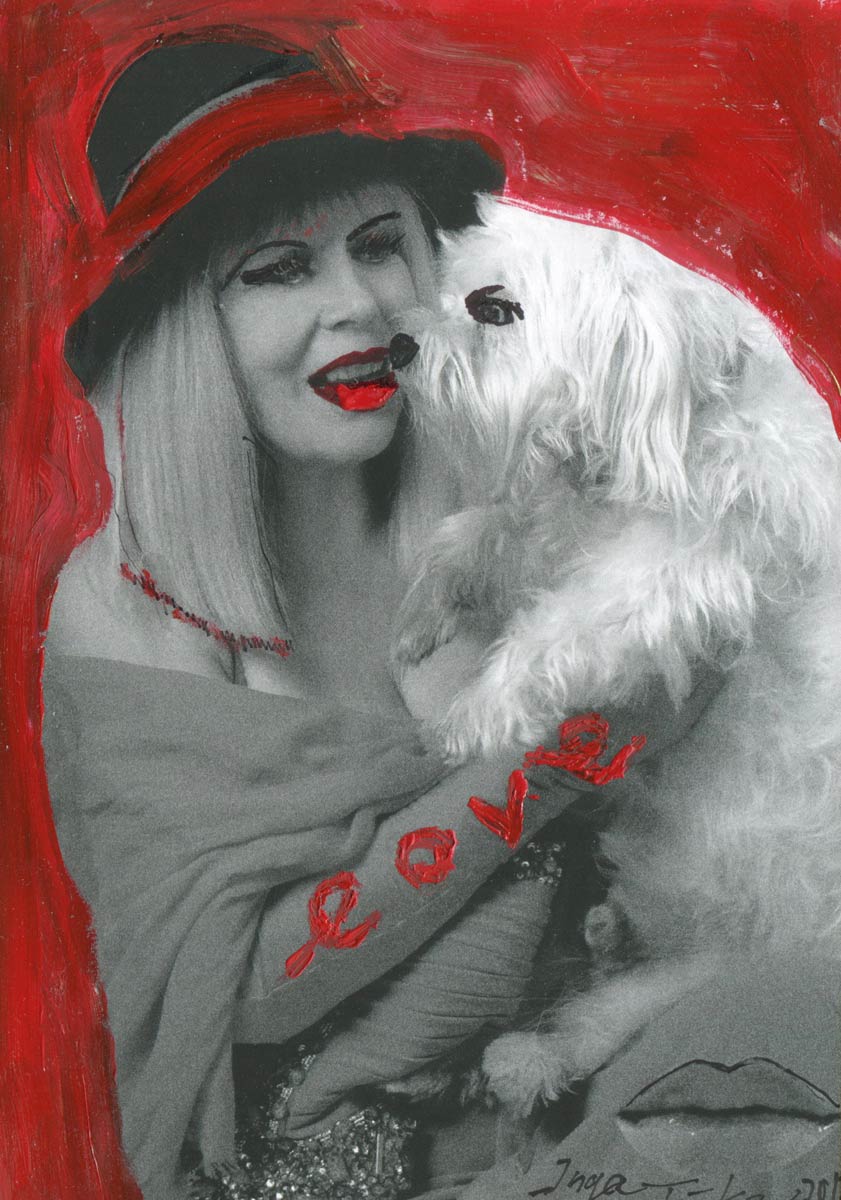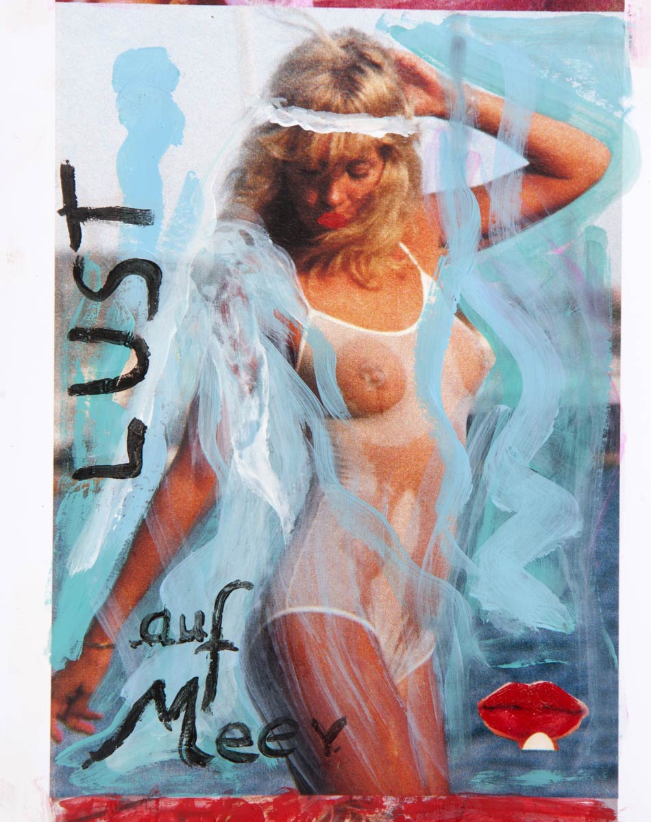 Alle Love 2024 Wilde Col­la­gen Moderne Über­la­ge­run­gen Blau Rot Gelb Expres­si­ve Ladies Por­traits im Auftrag Schwarz­weiss Schwarz­weiss-Redpink Taschen­bil­der