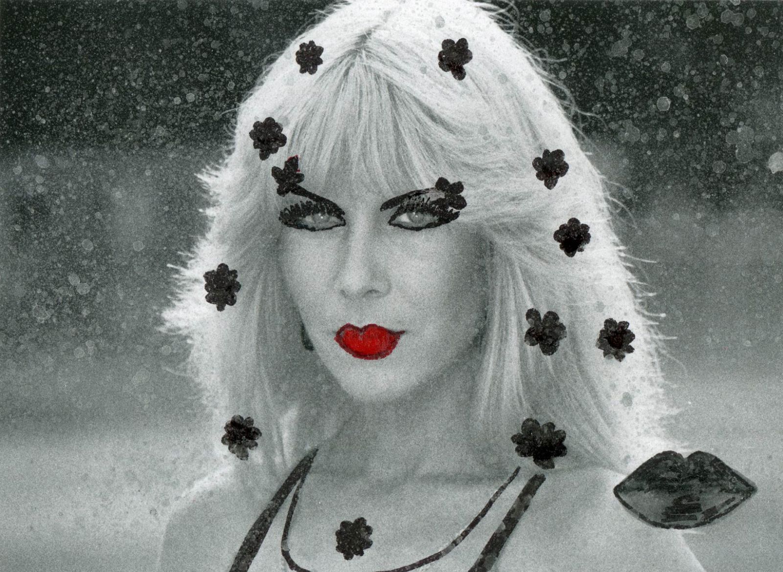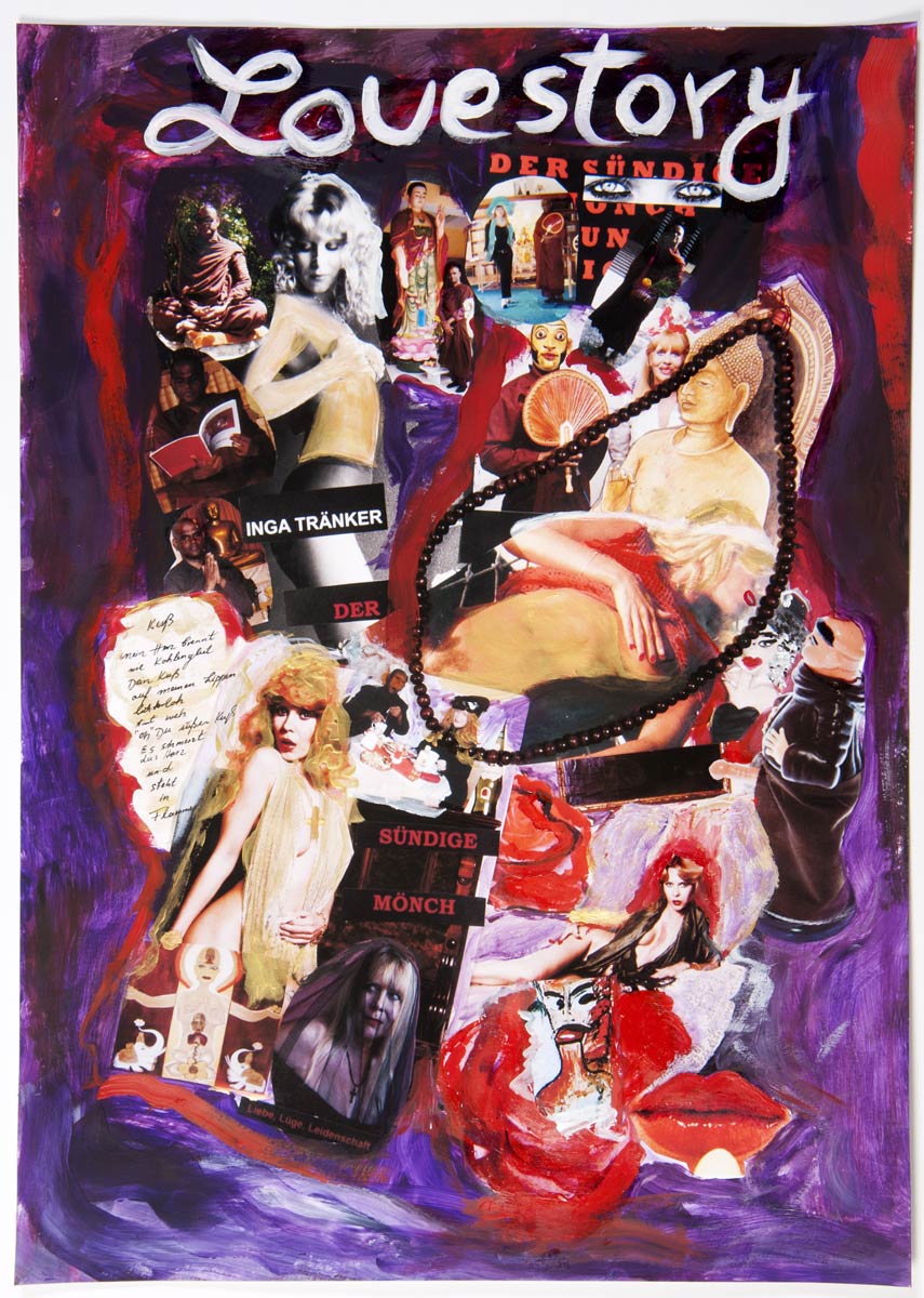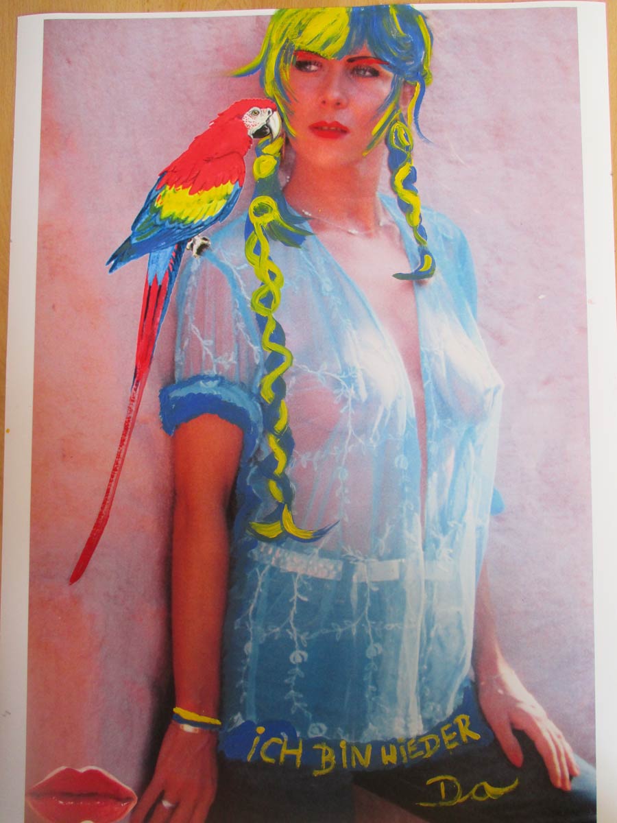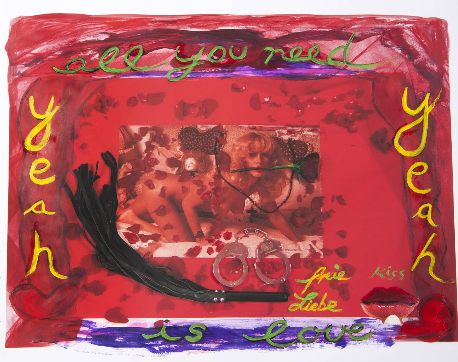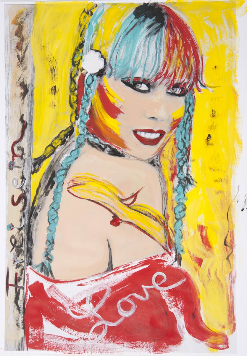 Alle Love 2024 Wilde Col­la­gen Moderne Über­la­ge­run­gen Blau Rot Gelb Expres­si­ve Ladies Por­traits im Auftrag Schwarz­weiss Schwarz­weiss-Redpink Taschen­bil­der