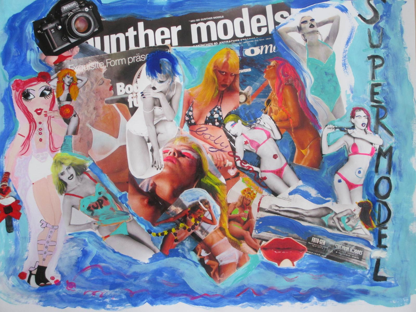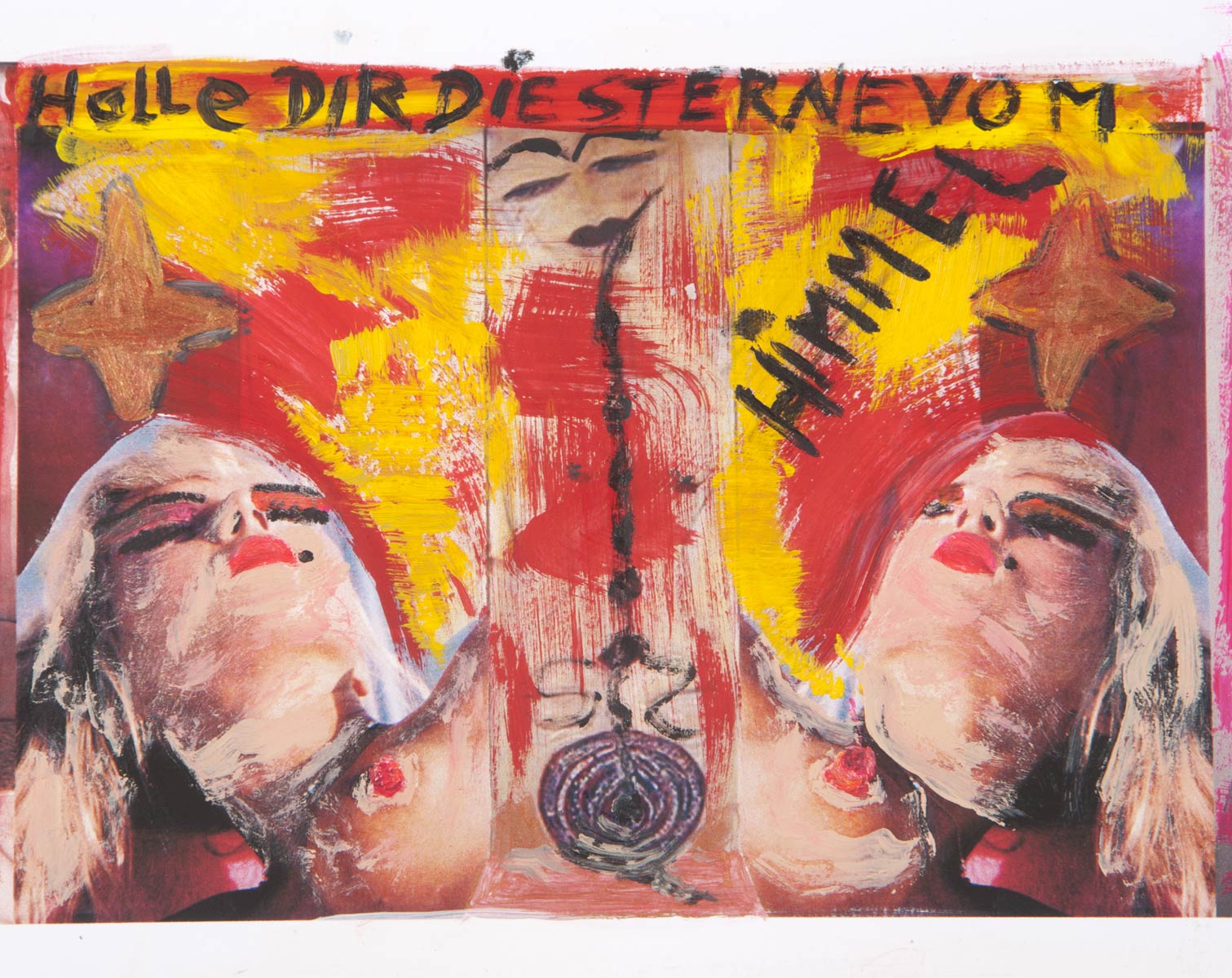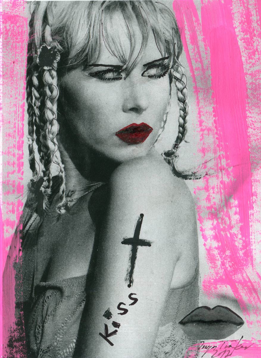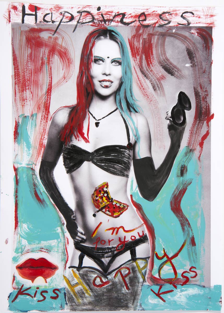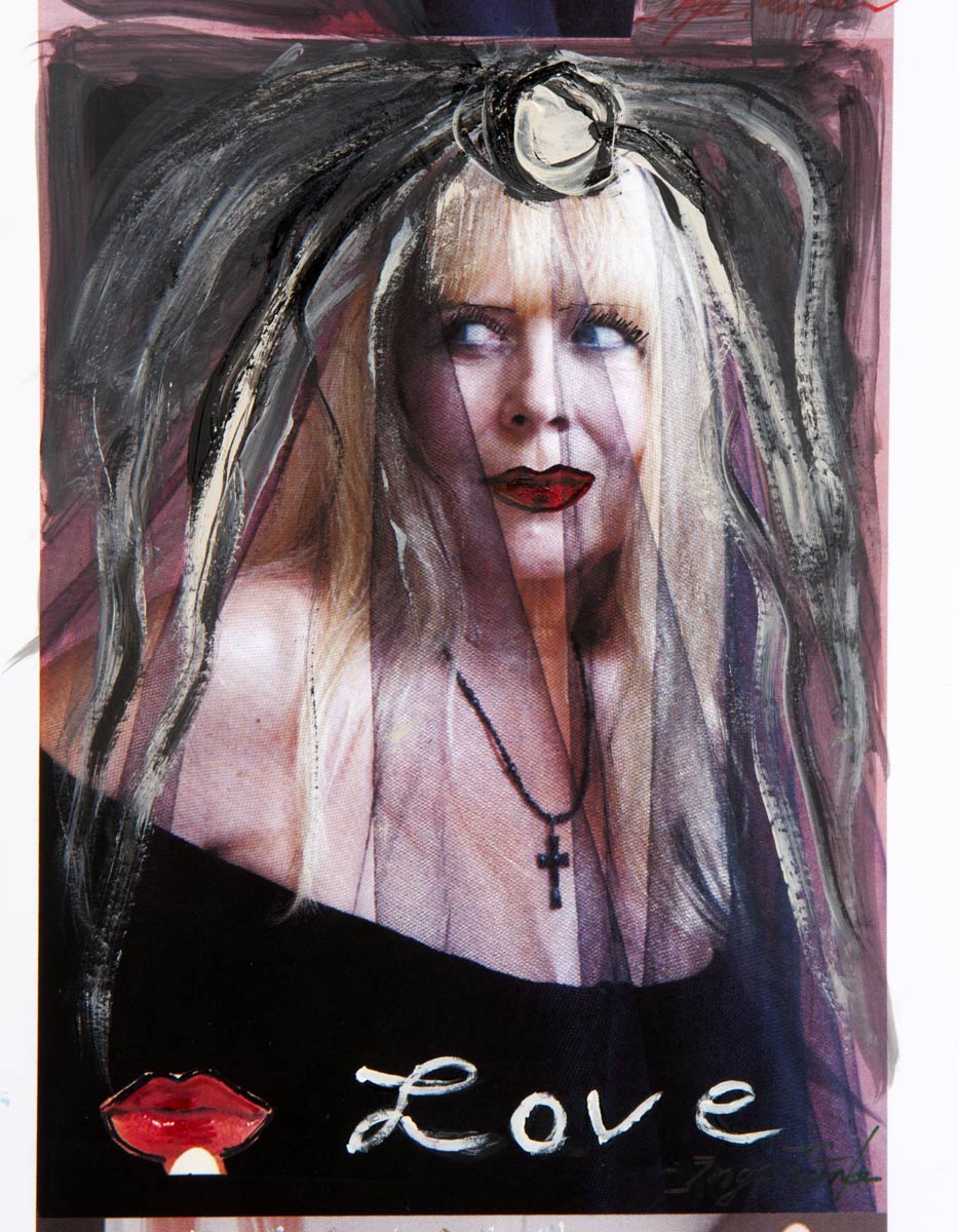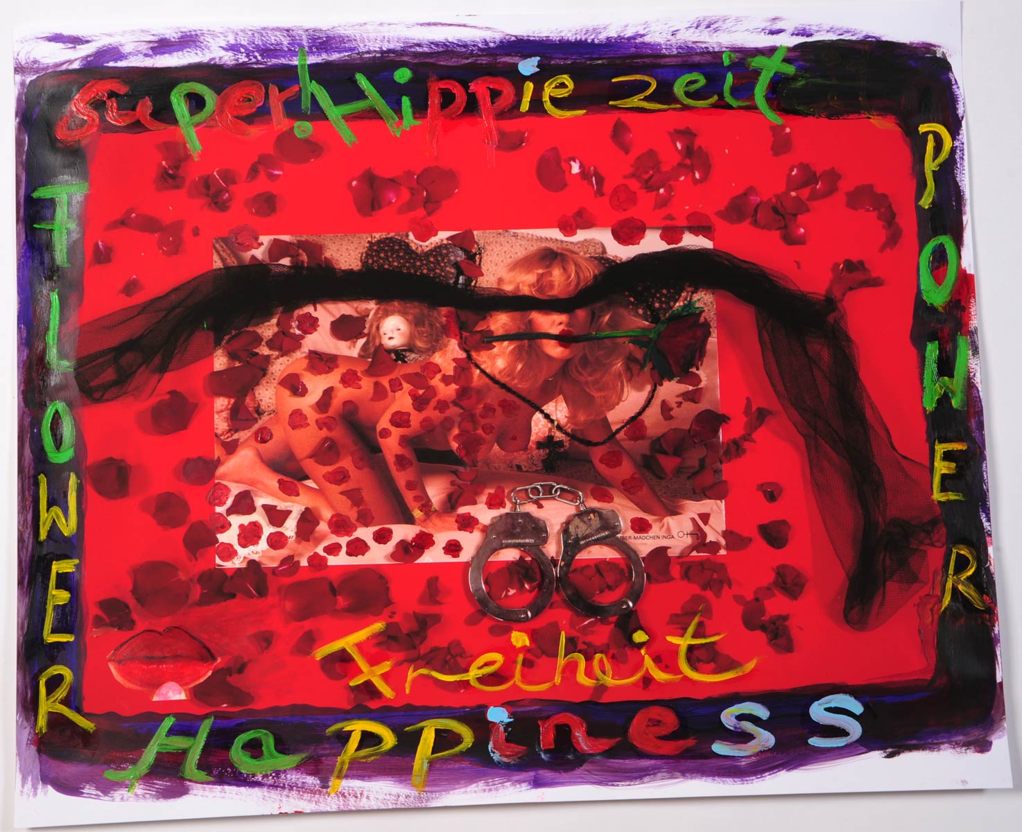 Alle Love 2024 Wilde Col­la­gen Moderne Über­la­ge­run­gen Blau Rot Gelb Expres­si­ve Ladies Por­traits im Auftrag Schwarz­weiss Schwarz­weiss-Redpink Taschen­bil­der