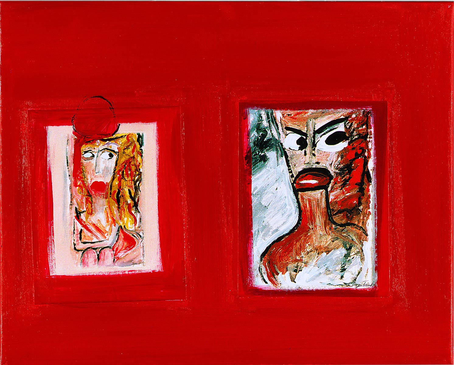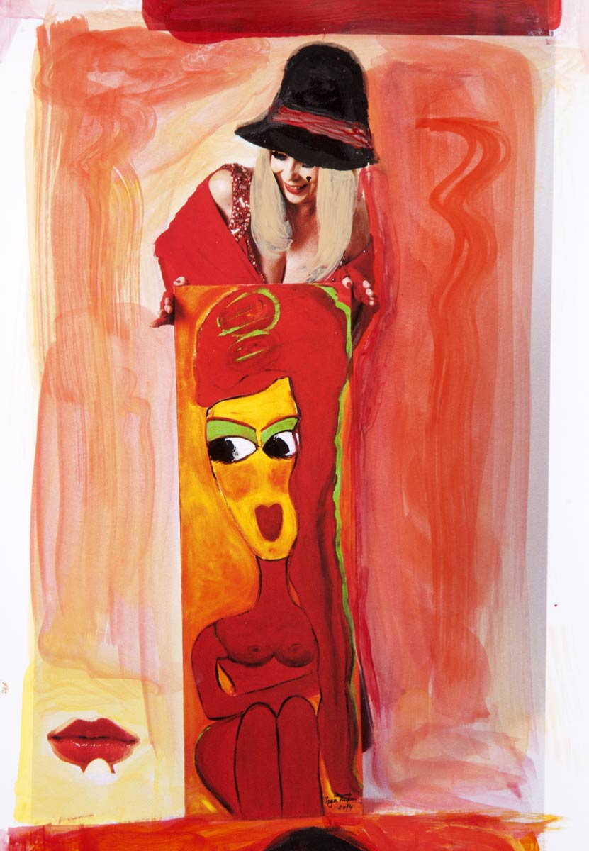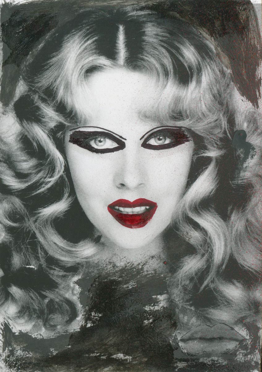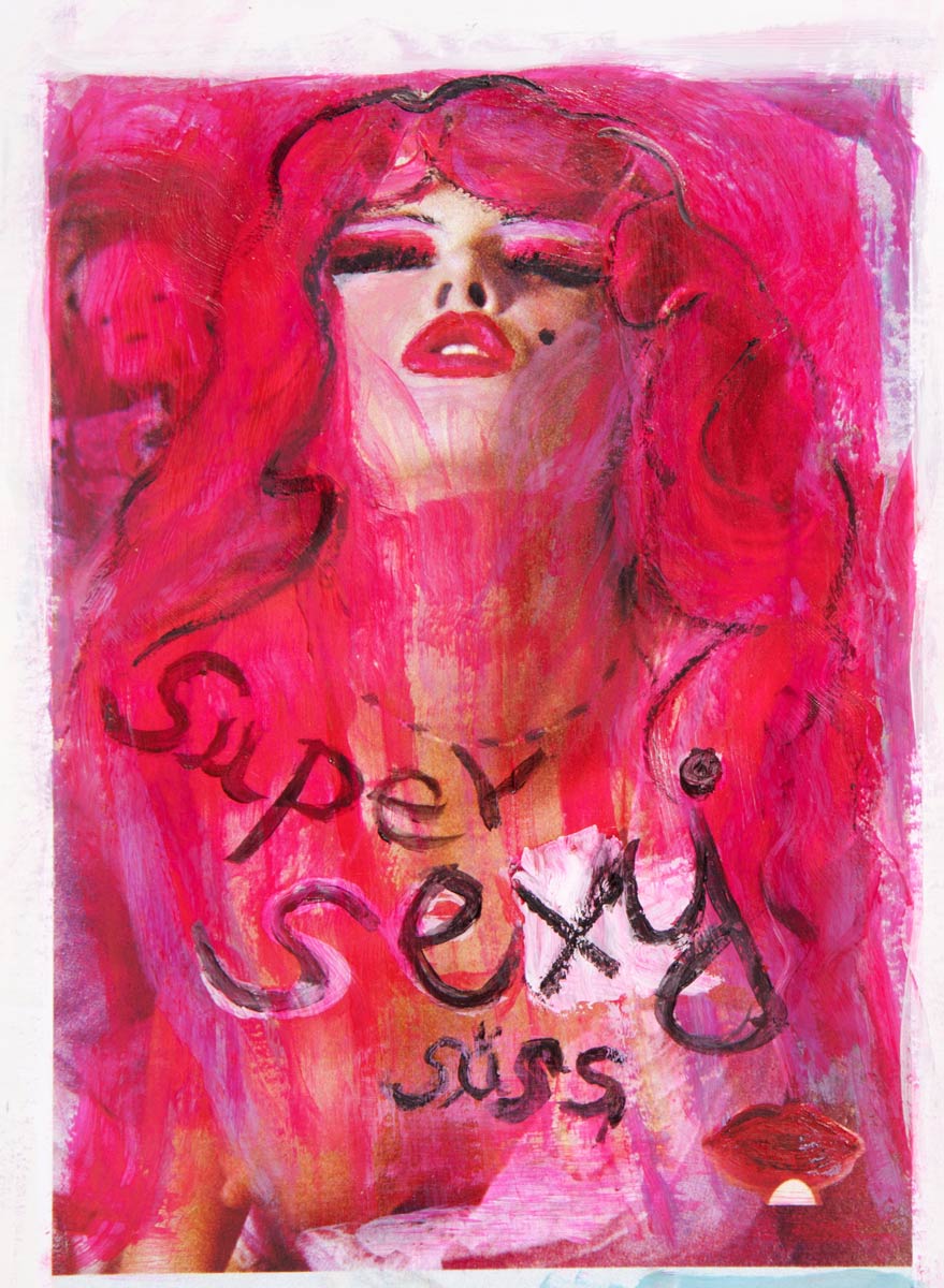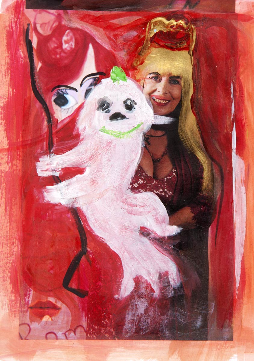 Alle Love 2024 Wilde Col­la­gen Moderne Über­la­ge­run­gen Blau Rot Gelb Expres­si­ve Ladies Por­traits im Auftrag Schwarz­weiss Schwarz­weiss-Redpink Taschen­bil­der