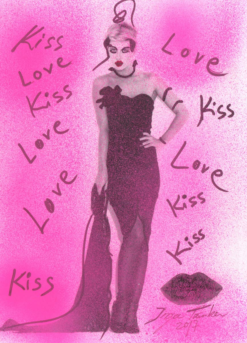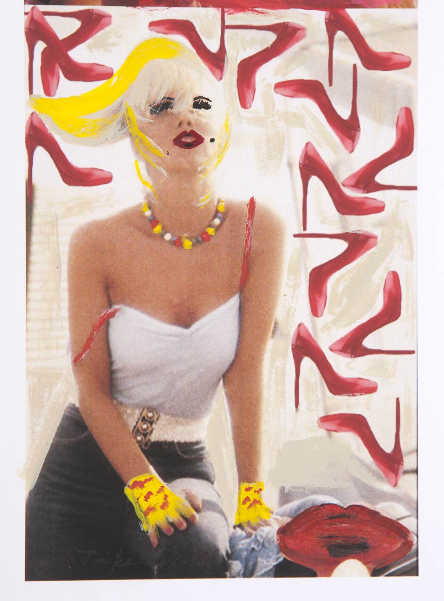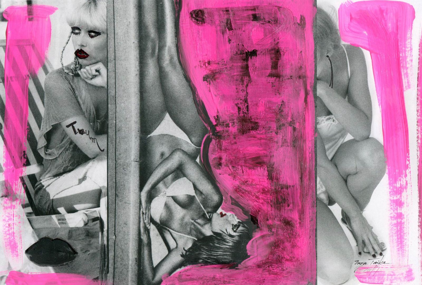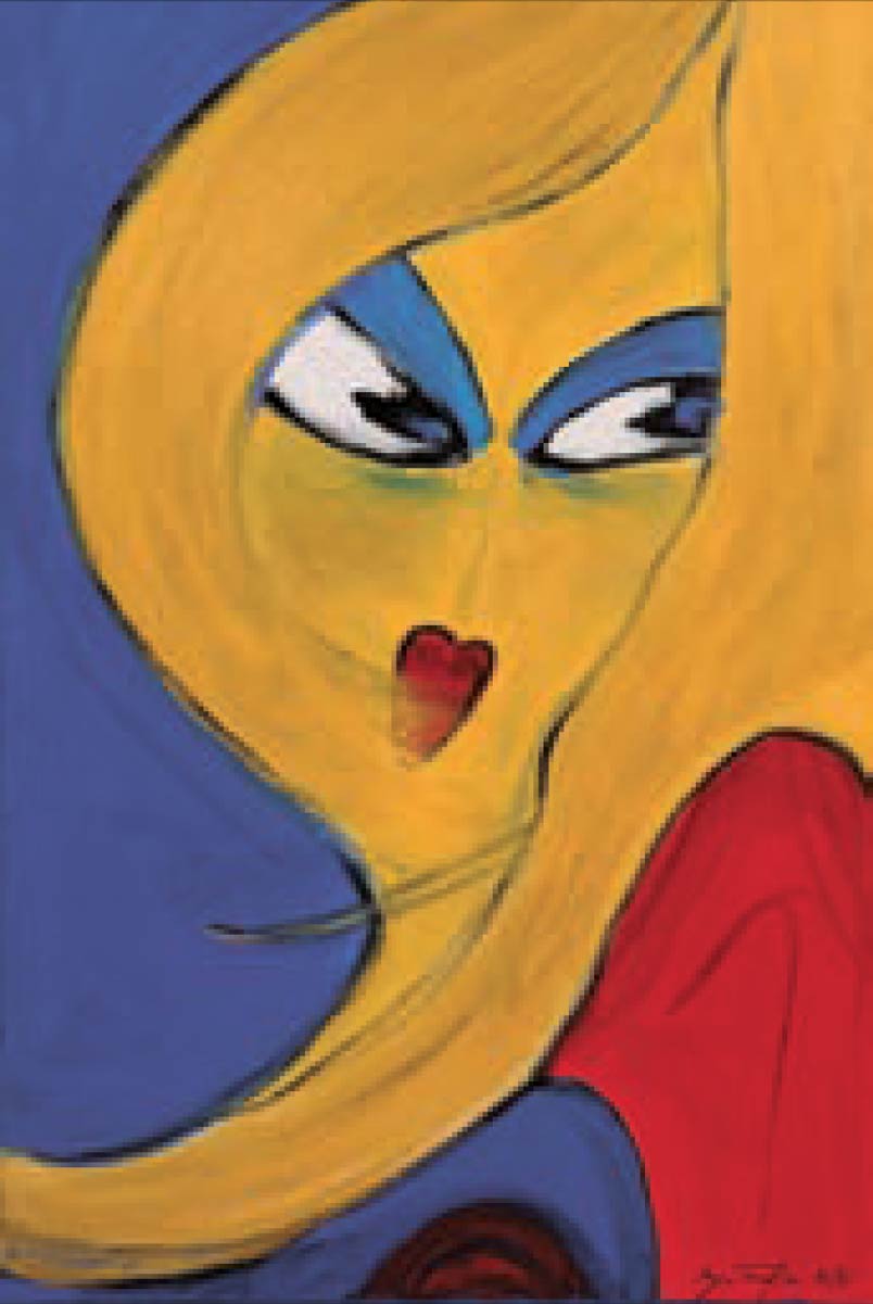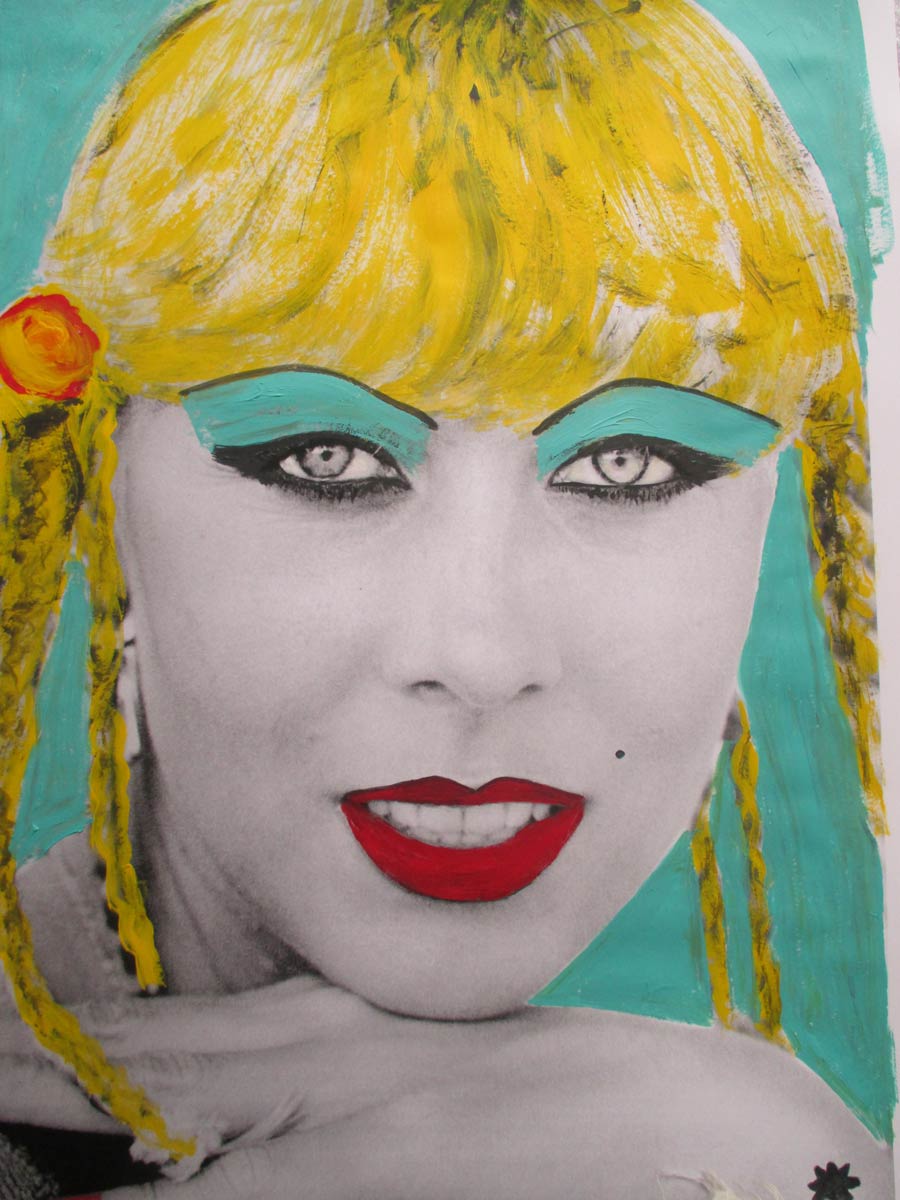 Alle Love 2024 Wilde Col­la­gen Moderne Über­la­ge­run­gen Blau Rot Gelb Expres­si­ve Ladies Por­traits im Auftrag Schwarz­weiss Schwarz­weiss-Redpink Taschen­bil­der
