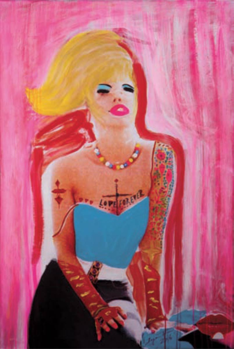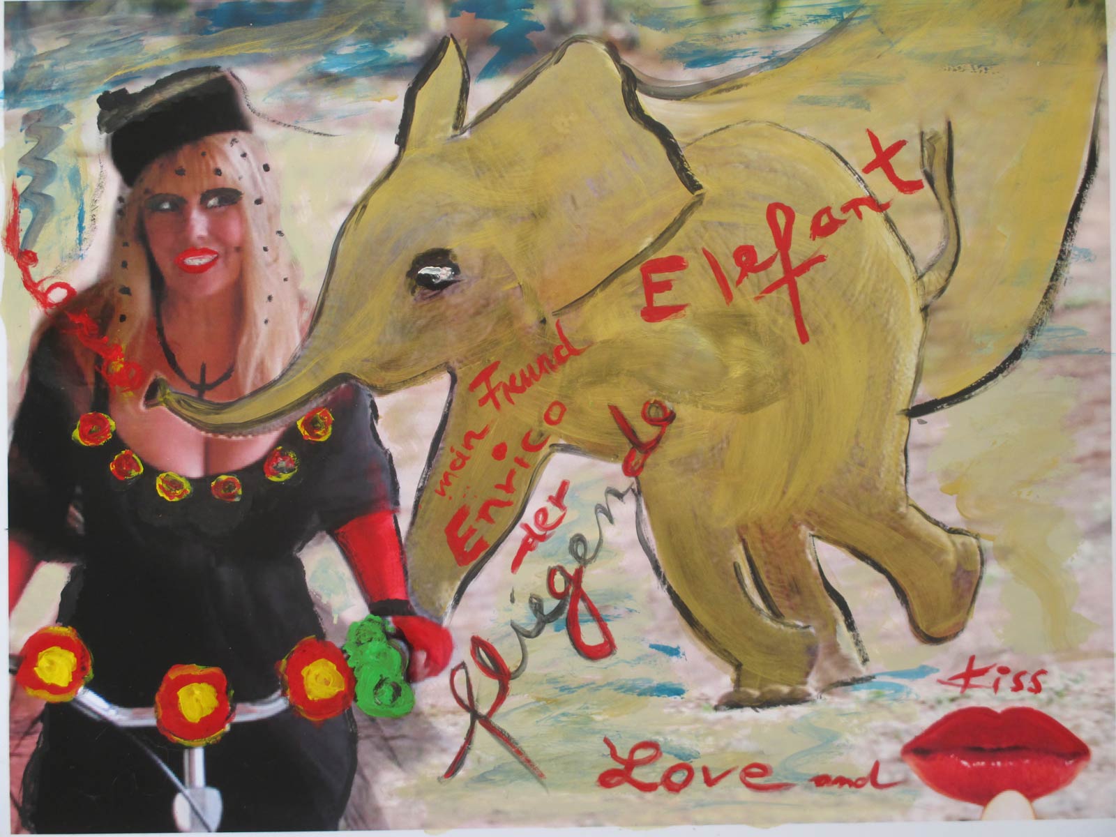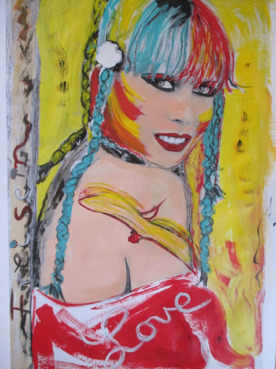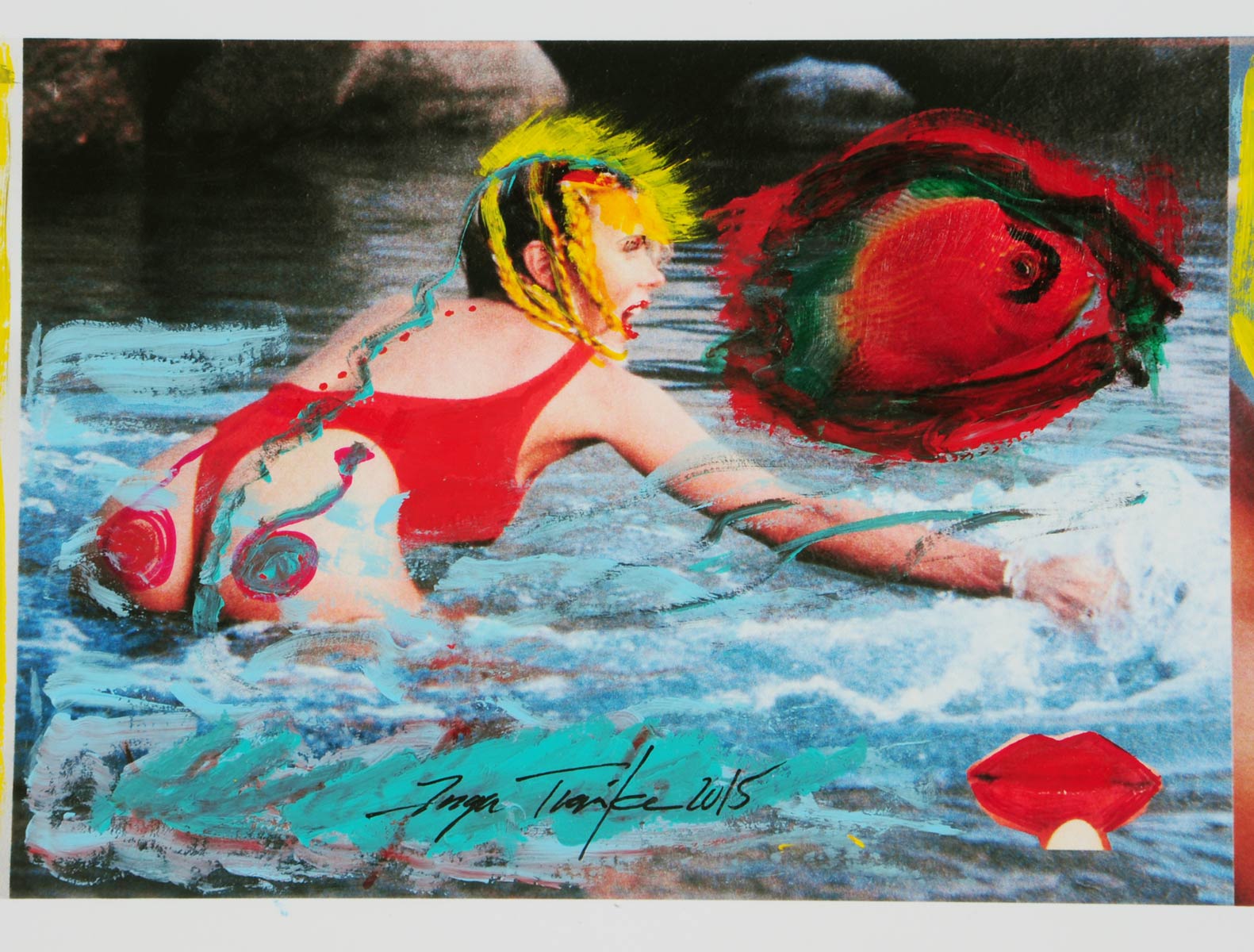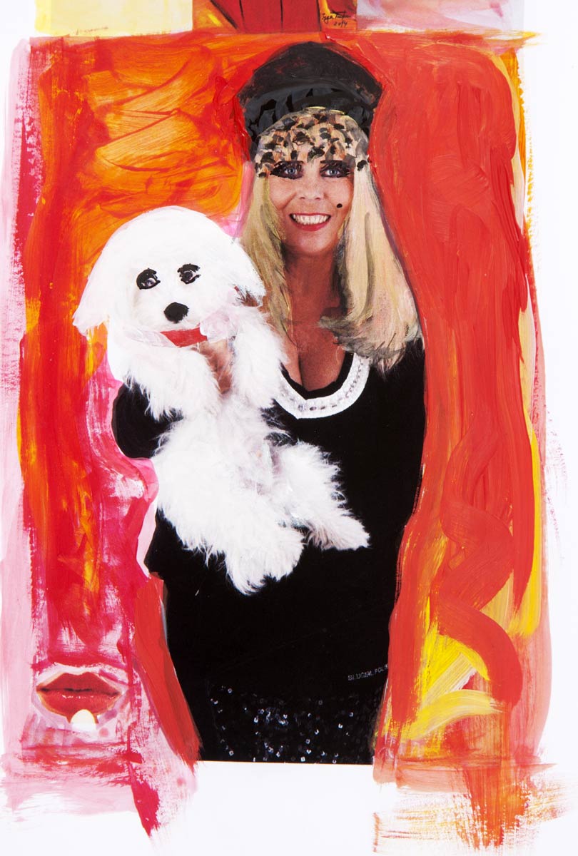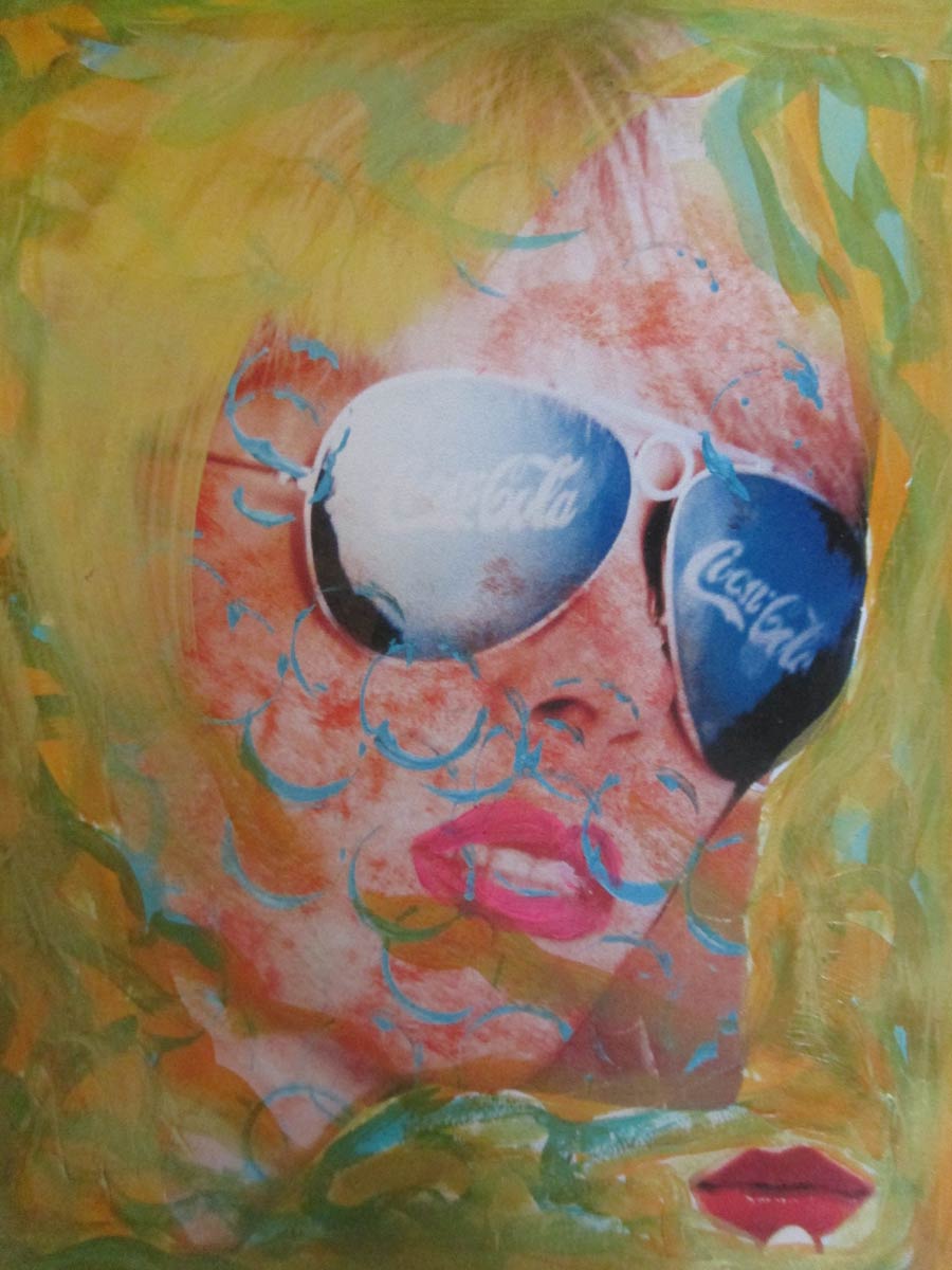 Alle Love 2024 Wilde Col­la­gen Moderne Über­la­ge­run­gen Blau Rot Gelb Expres­si­ve Ladies Por­traits im Auftrag Schwarz­weiss Schwarz­weiss-Redpink Taschen­bil­der
