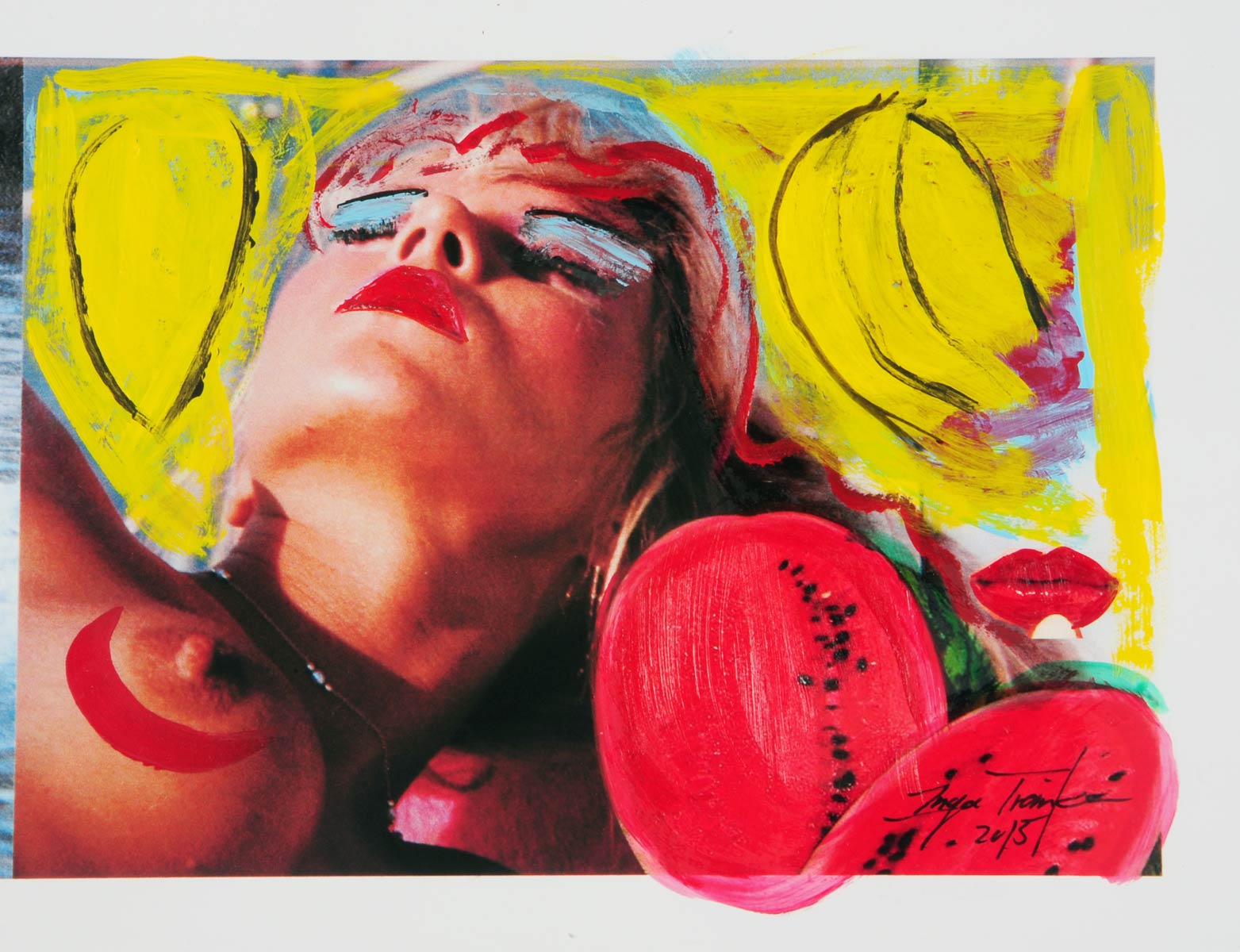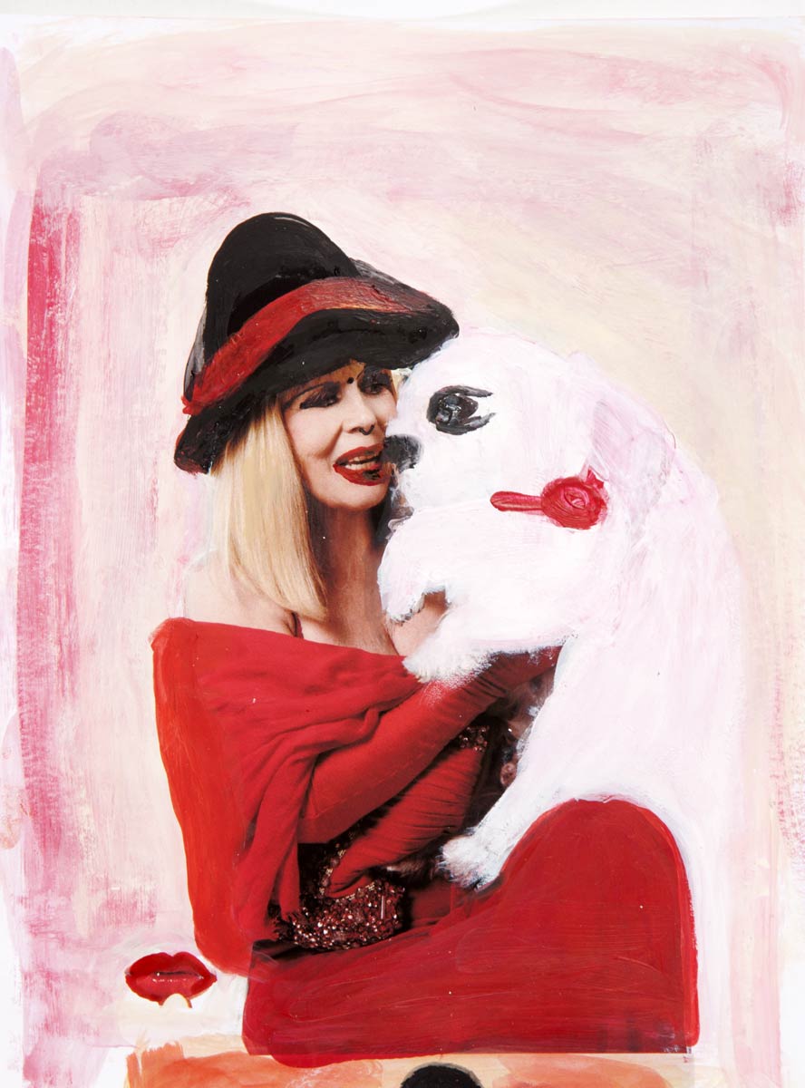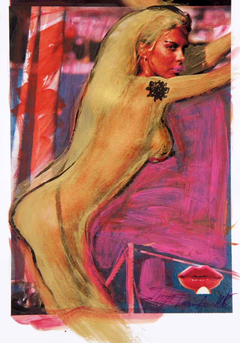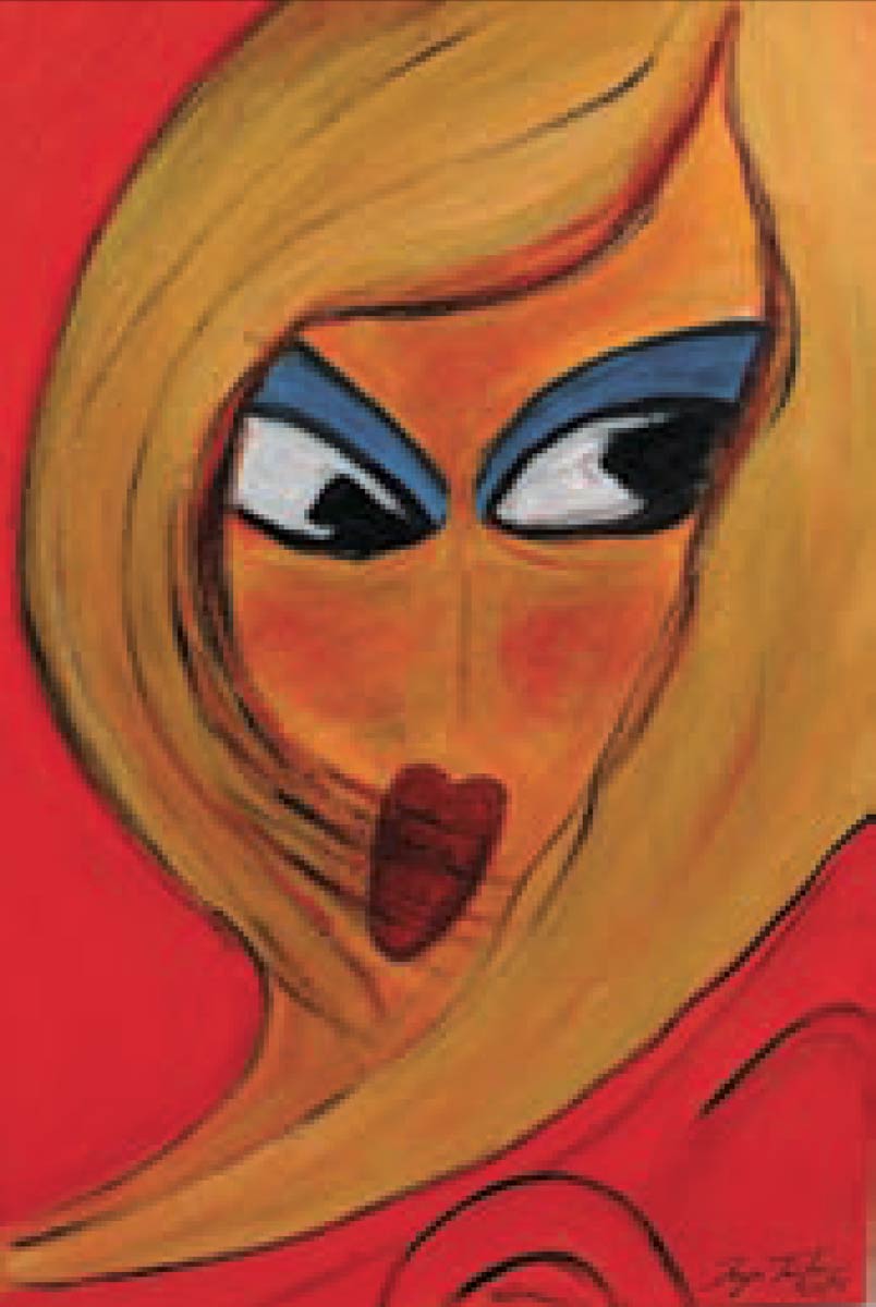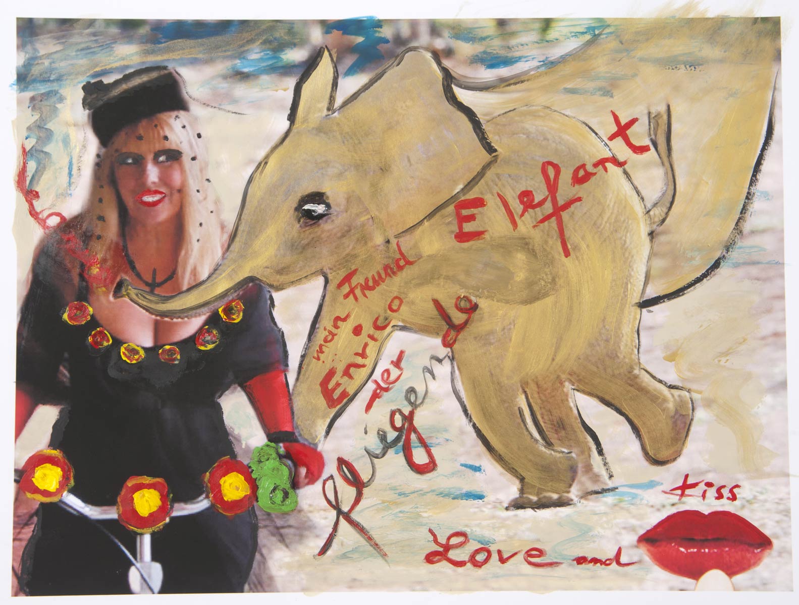 Alle Love 2024 Wilde Col­la­gen Moderne Über­la­ge­run­gen Blau Rot Gelb Expres­si­ve Ladies Por­traits im Auftrag Schwarz­weiss Schwarz­weiss-Redpink Taschen­bil­der