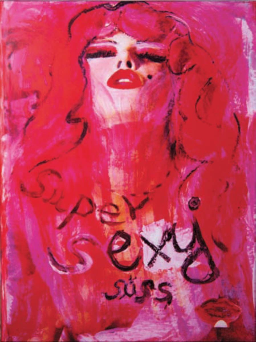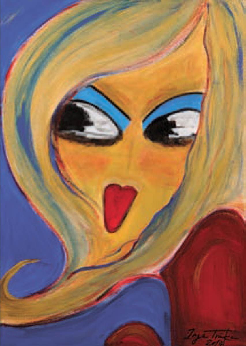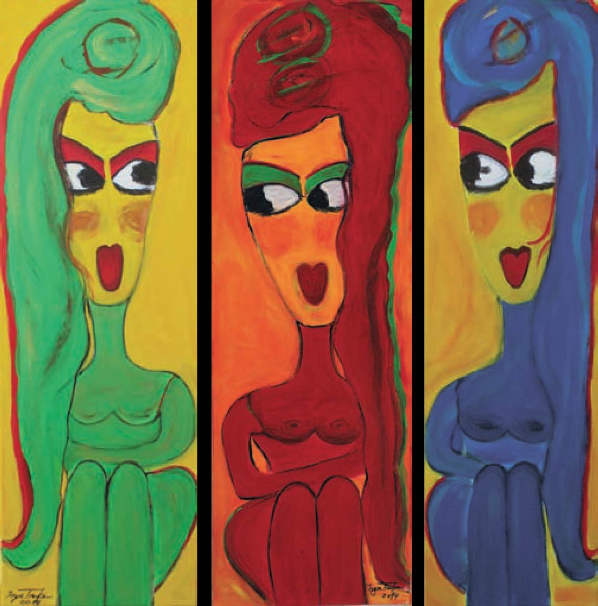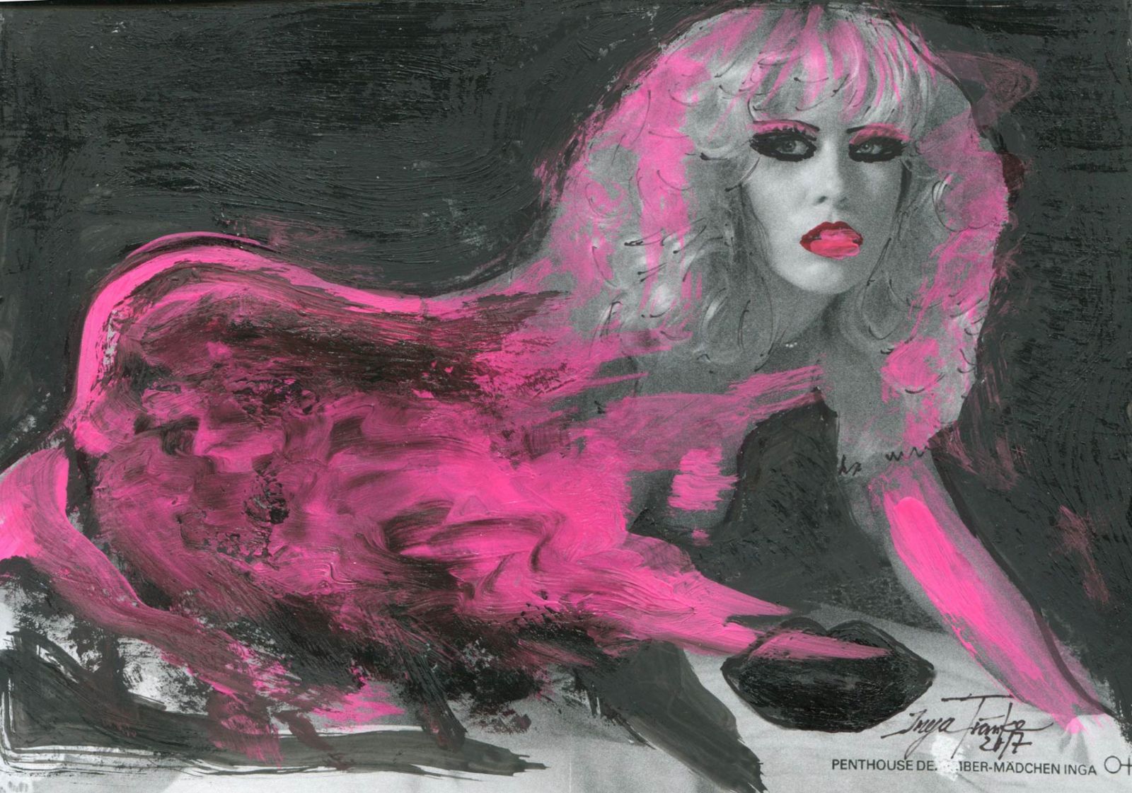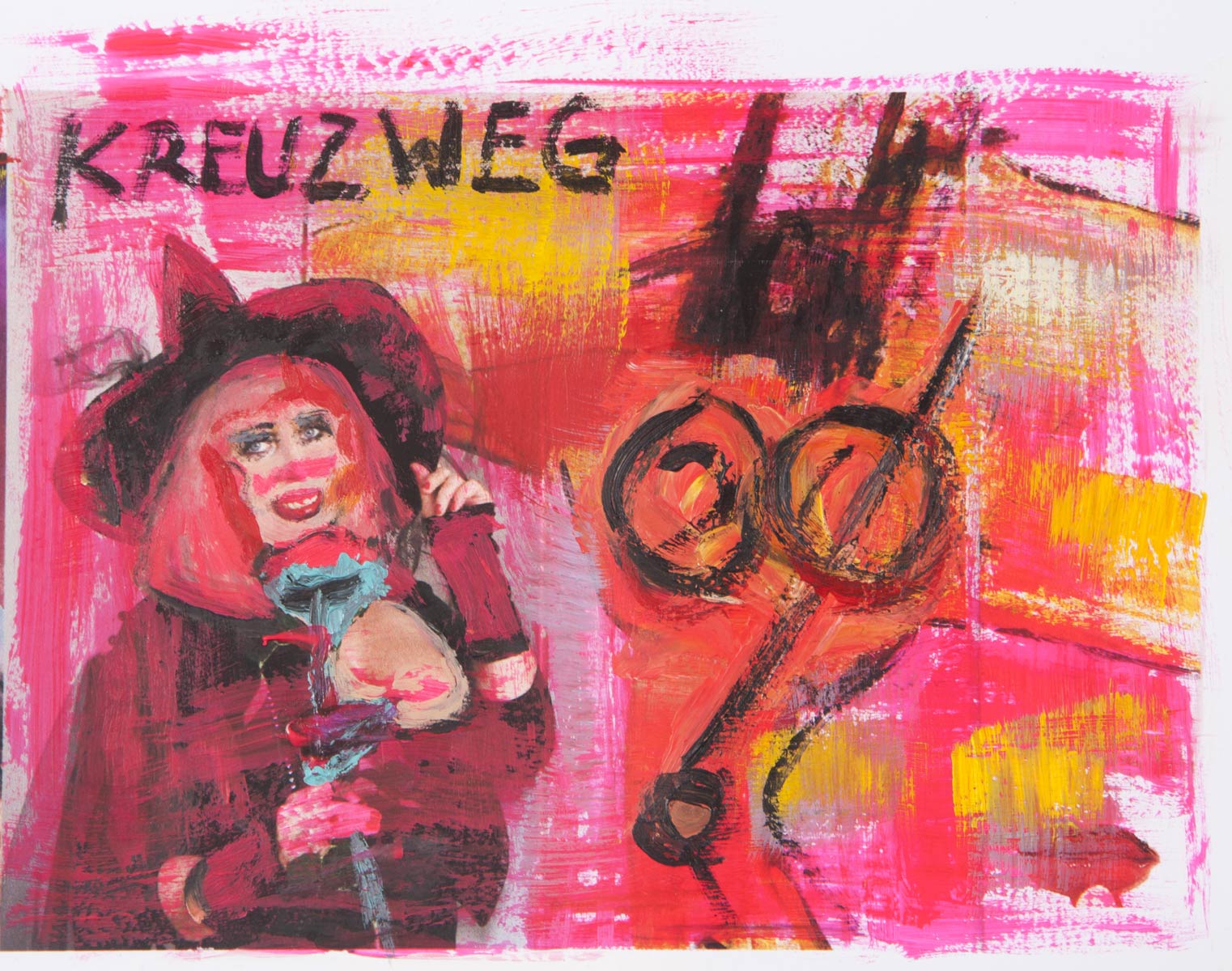 Alle Love 2024 Wilde Col­la­gen Moderne Über­la­ge­run­gen Blau Rot Gelb Expres­si­ve Ladies Por­traits im Auftrag Schwarz­weiss Schwarz­weiss-Redpink Taschen­bil­der