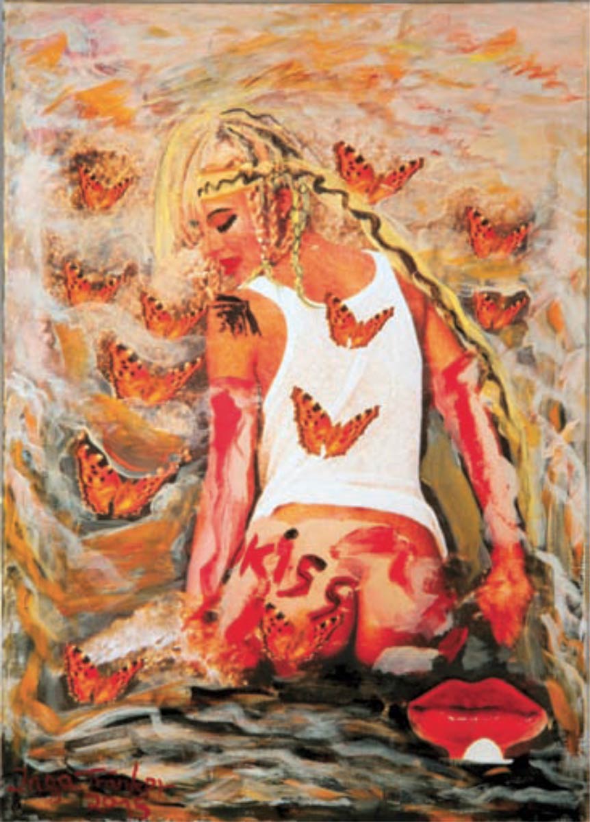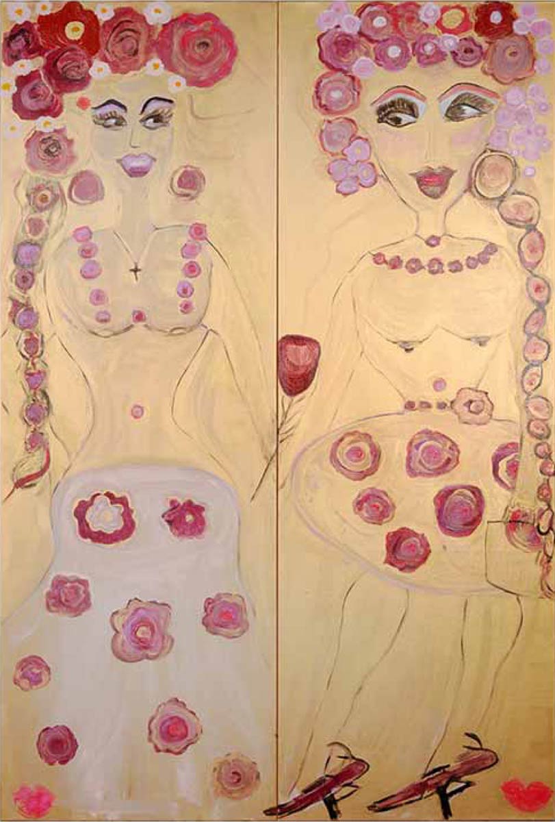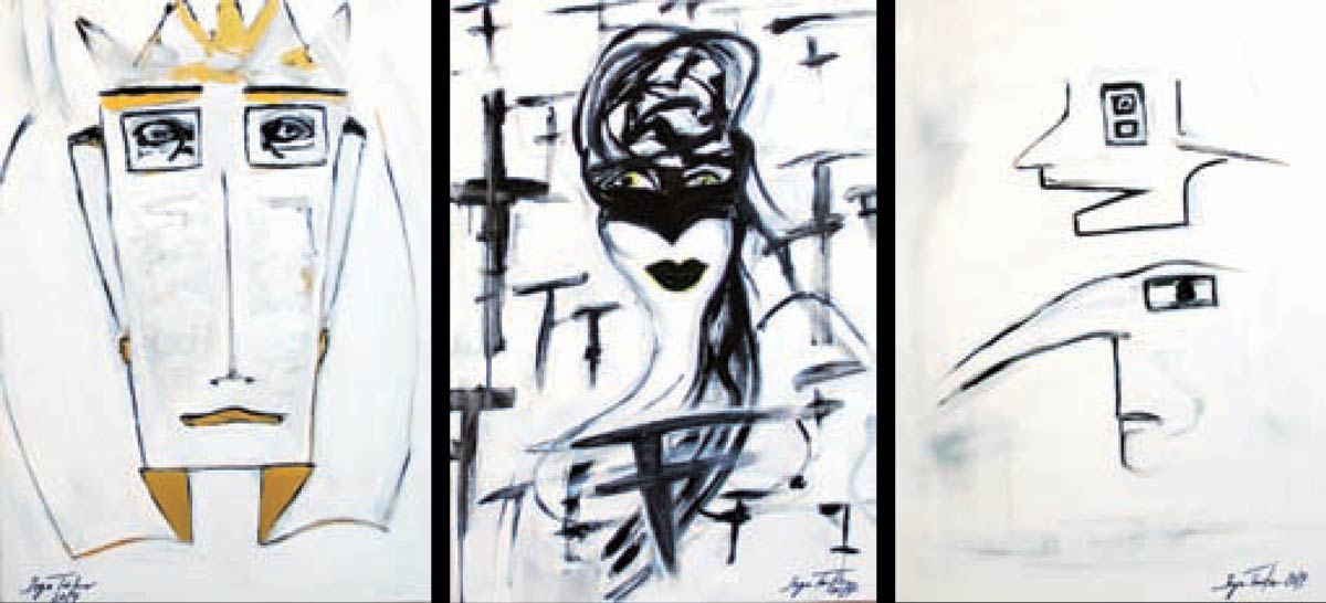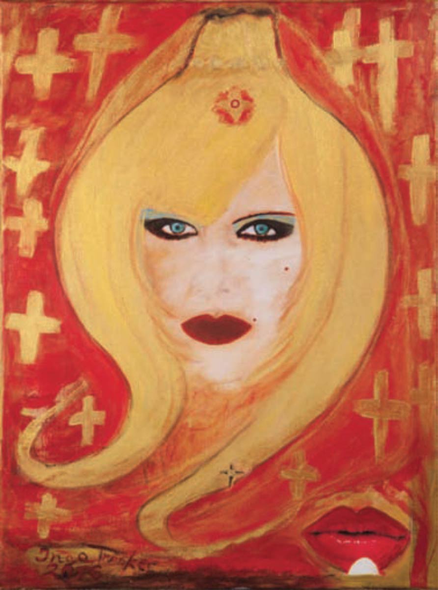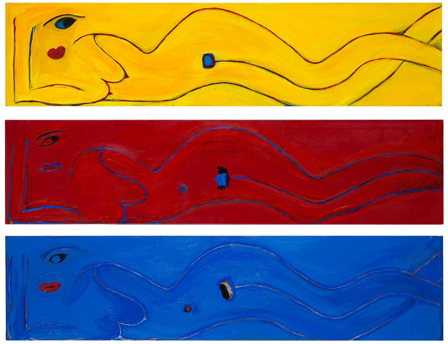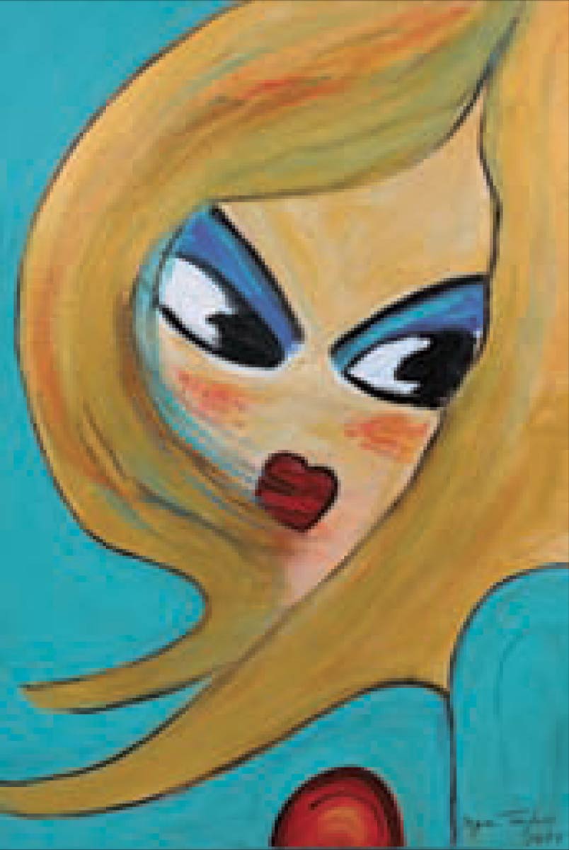 Alle Love 2024 Wilde Col­la­gen Moderne Über­la­ge­run­gen Blau Rot Gelb Expres­si­ve Ladies Por­traits im Auftrag Schwarz­weiss Schwarz­weiss-Redpink Taschen­bil­der